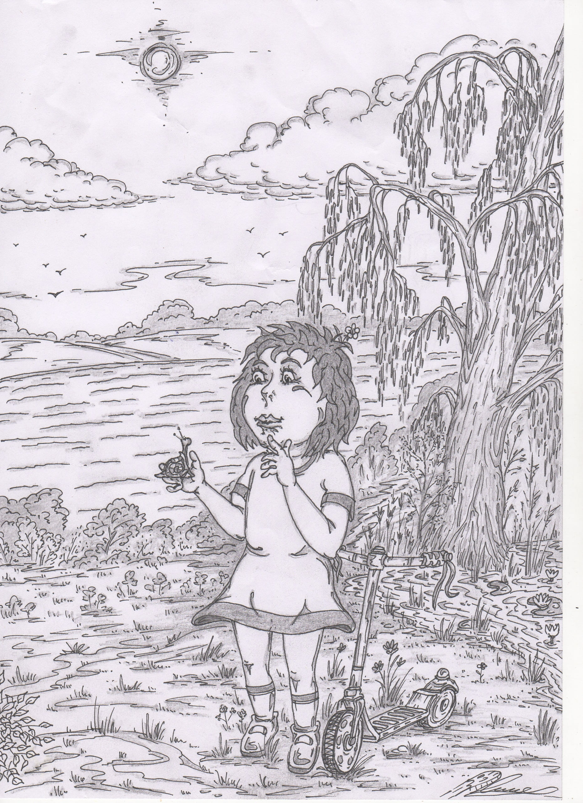 - Детские и природные сцены: Девочка с улиткой у реки или птица на холме, подчеркивающие чудо природы и детскую любознательность.